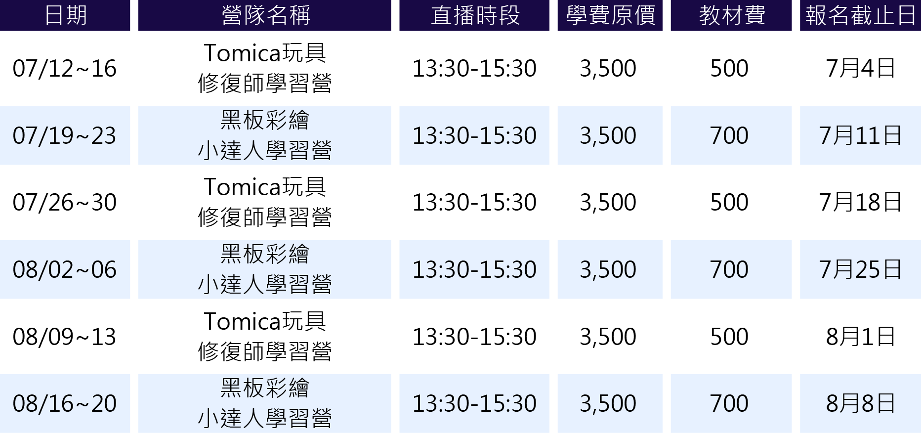 ▧ 營隊日期:2021/7~8月 (下午 13:30~15:30)